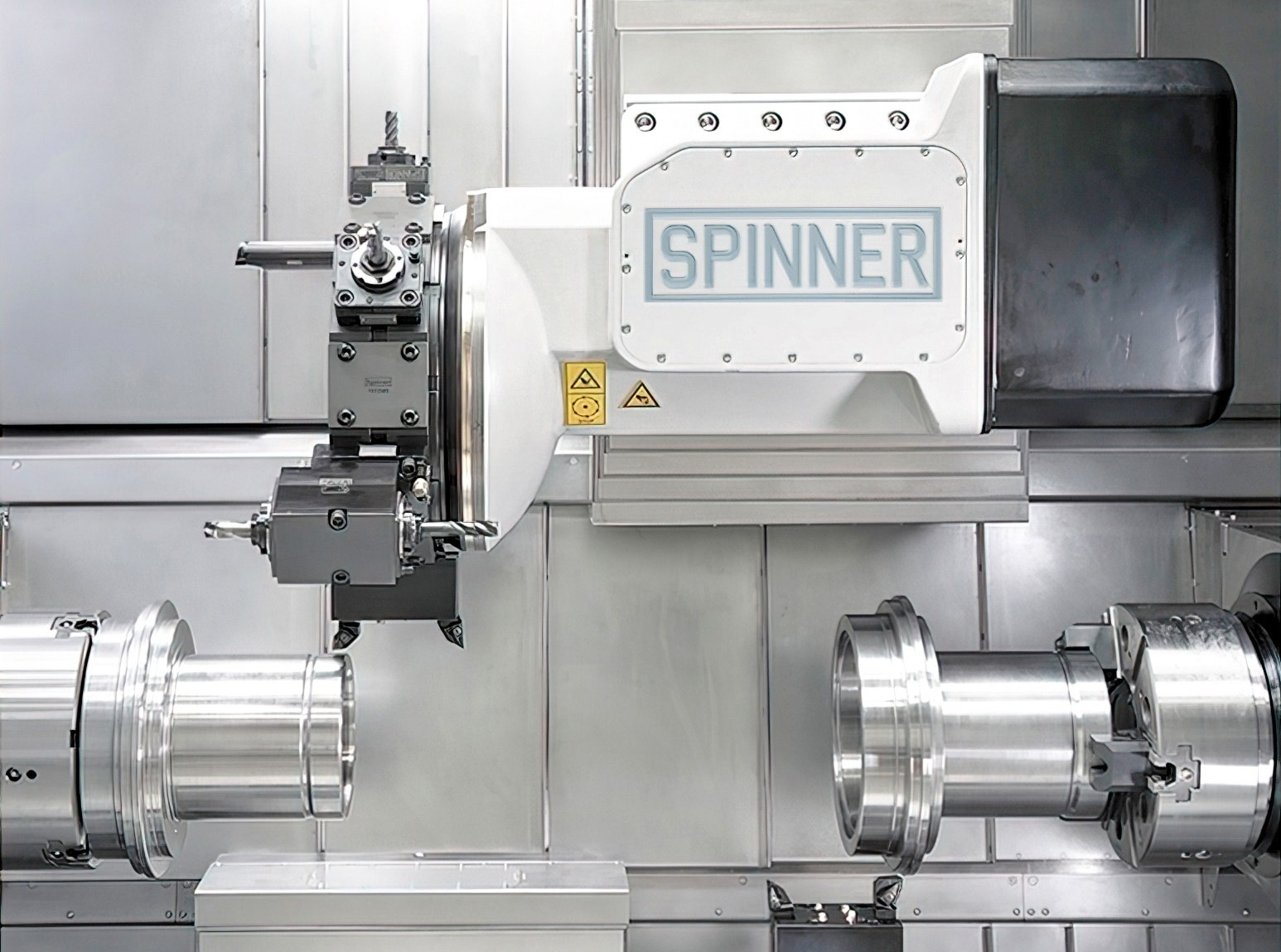 The machines are offered in two bed lengths with a maximum distance between the spindle noses of 1,500 mm or 2,100 mm. An 80-bar coolant delivery system with temperature control are further individual options. All core parts of the lathes, including the motor spindles and turrets, are produced at the Spinner factory and robotic component load / onload and storage arrangements are similarly manufactured in-house.